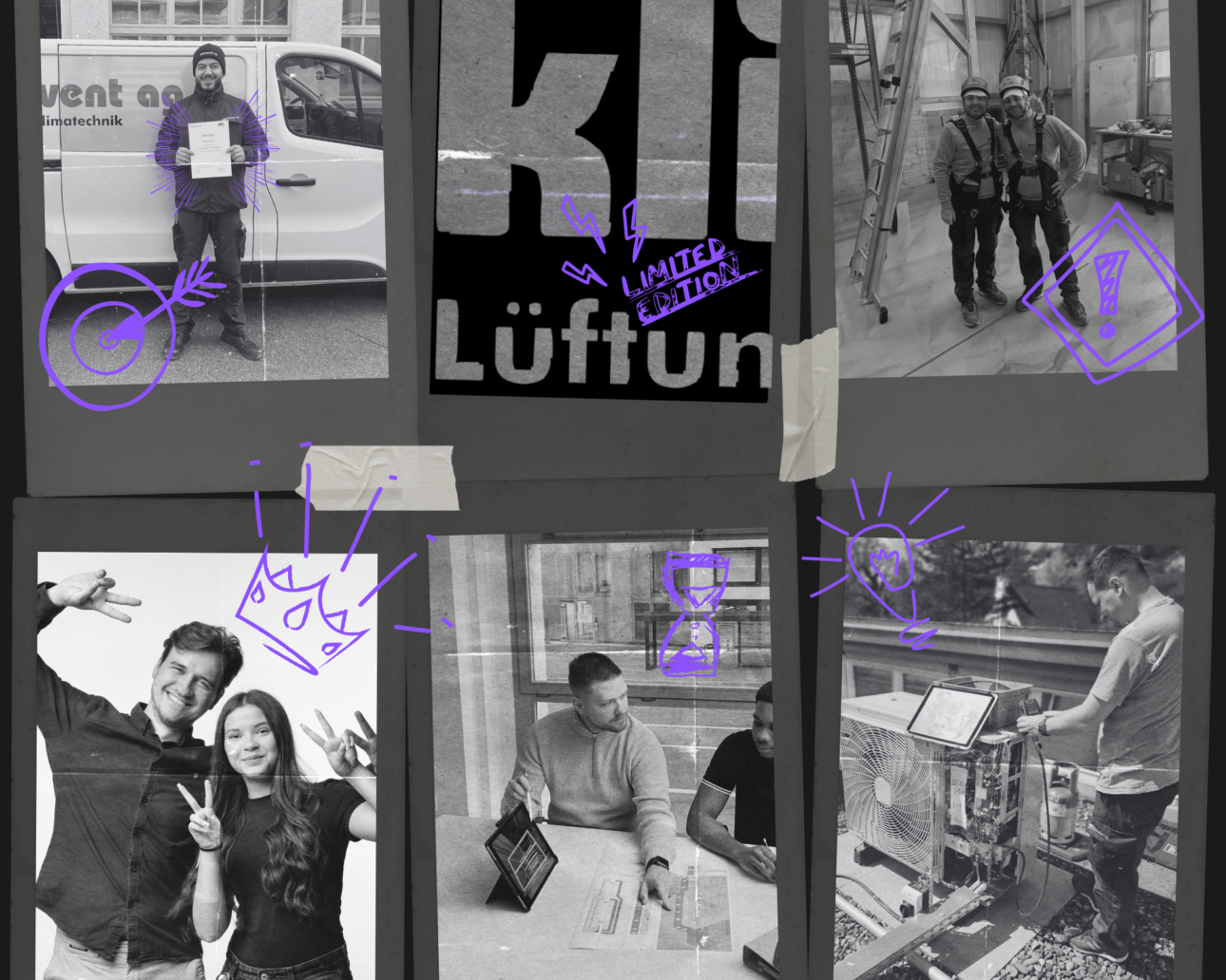 Bei der Klimavent AG arbeiten Spezialistinnen und Spezialisten aus verschiedenen Bereichen der Lüftungs- und Klimatechnik zusammen. Unsere Mitarbeitenden planen, installieren und warten moderne Lüftungs- und Klimaanlagen und sorgen dafür, dass Gebäude zuverlässig mit frischer Luft versorgt werden.