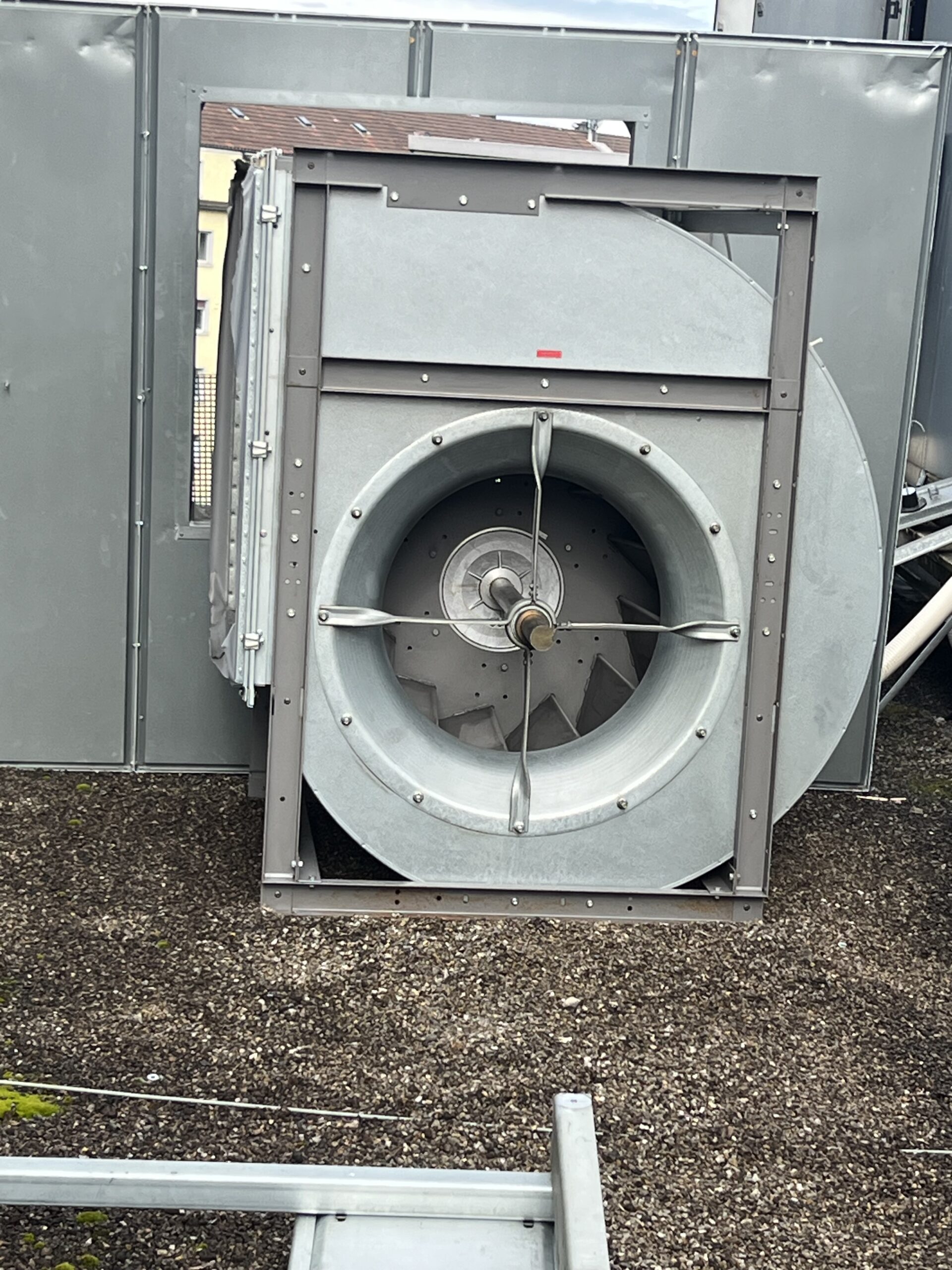 Am Standort Kalanderplatz 1 in Zürich haben wir die Lüftungsanlage umfassend modernisiert. Ziel war es, die bestehenden Radialventilatoren durch energieeffiziente EC-Ventilatoren zu ersetzen, um den Stromverbrauch zu senken, die Lebensdauer zu verlängern und den Geräuschpegel deutlich zu reduzieren.