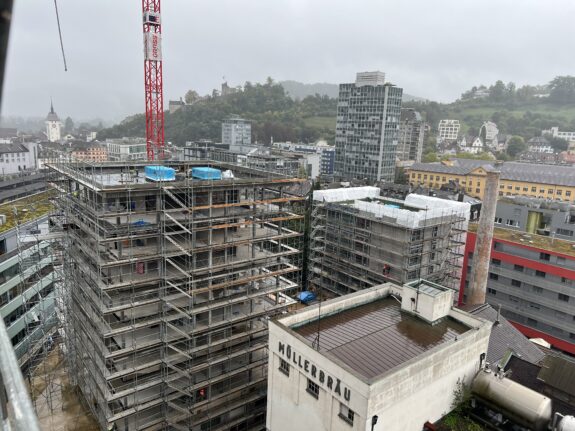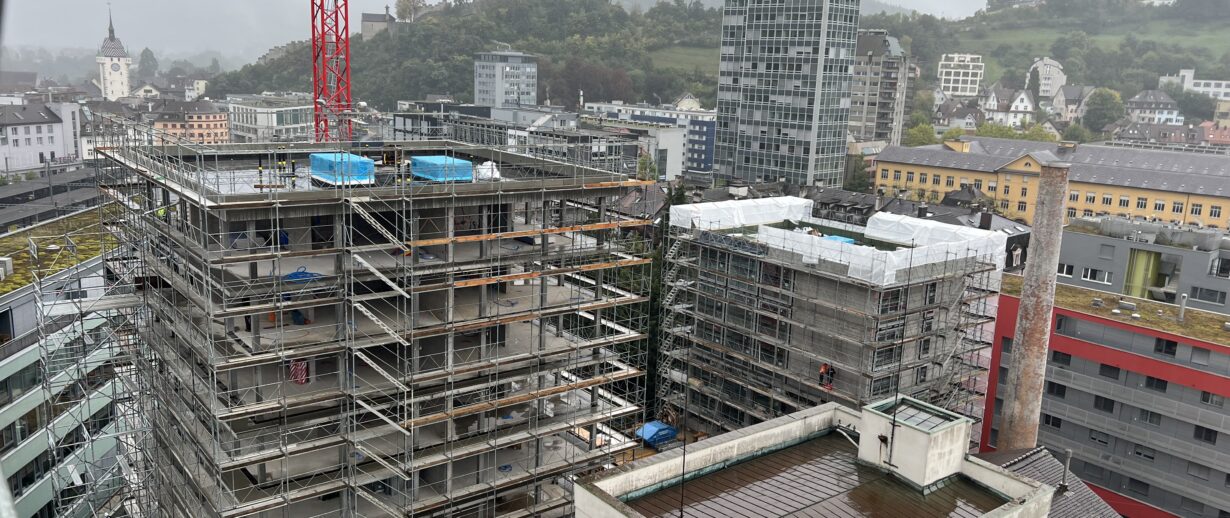 Noch wichtiger: Auch im technischen Ausbau kommen wir gut voran. Ein grosser Teil der Lüftungsführungen in den Untergeschossen und Steigzonen ist bereits installiert. Erste Geräte stehen, viele Einlagen sind gesetzt, die Gewerke greifen sauber ineinander.